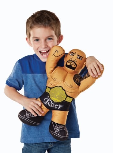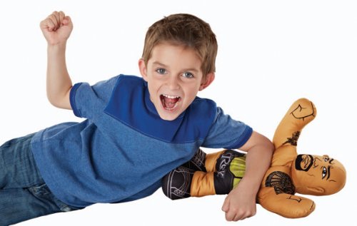 Now WWE fans can take on their favorite WWE Champion Superstars in a big way! This oversized, plush The Rock figure lets kids go head to head against him in awesome, over-the-top competitions. You can tell he’s a champion by his arms-up pose and champion belt printed around his waist. The figure is made of durable materials, so he's tough enough to take the roughhousing, soft enough to squeeze, and bold enough to throw down! Boys will love battling The Rock to become a WWE Champion!