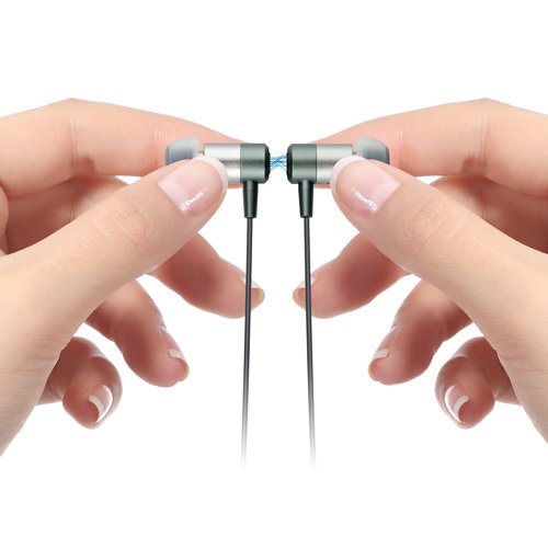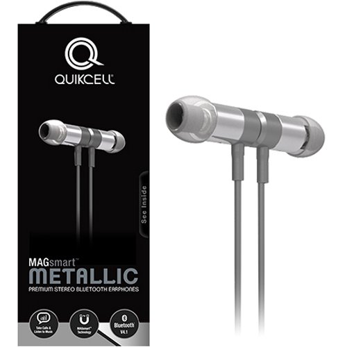 -. Title : Quikcell Magsmart full metal Bluetooth Headset with unique Play/Pause controls for Apple & Android - Retail Packaging - Grey