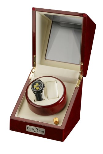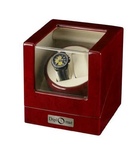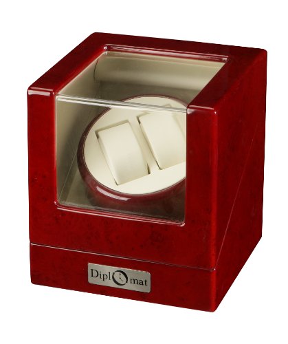 -. Binding : Watch -. Feature : Winds 2 watches on 1 turntable / Clockwise, auto swap or counter-clockwise rotations / Four different program settings / Included AC adapter power 110-240V / Front and top see-through windows -. Label : Diplomat -. Manufacturer : Diplomat -. MPN : 689466302479 -. PartNumber : 689466302479 -. ProductGroup : Watch -. ProductTypeName : WATCH -. Publisher : Diplomat -. Studio : Diplomat -. Title : Burgundy Wood Finish 2 Watch Winder With Cream Leatherette Interior, One Turntable With 4 Program Settings.