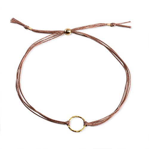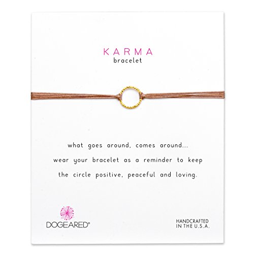 -. Feature : karma gold dipped sparkle ring on taupe adjustable cord, cord adjusts approx: 6"-8" / gold dipped 10mm karma circle / made In The USA / bead pull adjustable closure / comes on karma card packaged inside a signature dogeared sturdy box