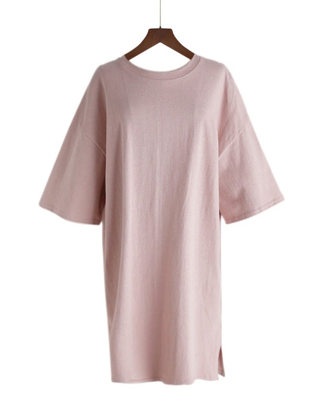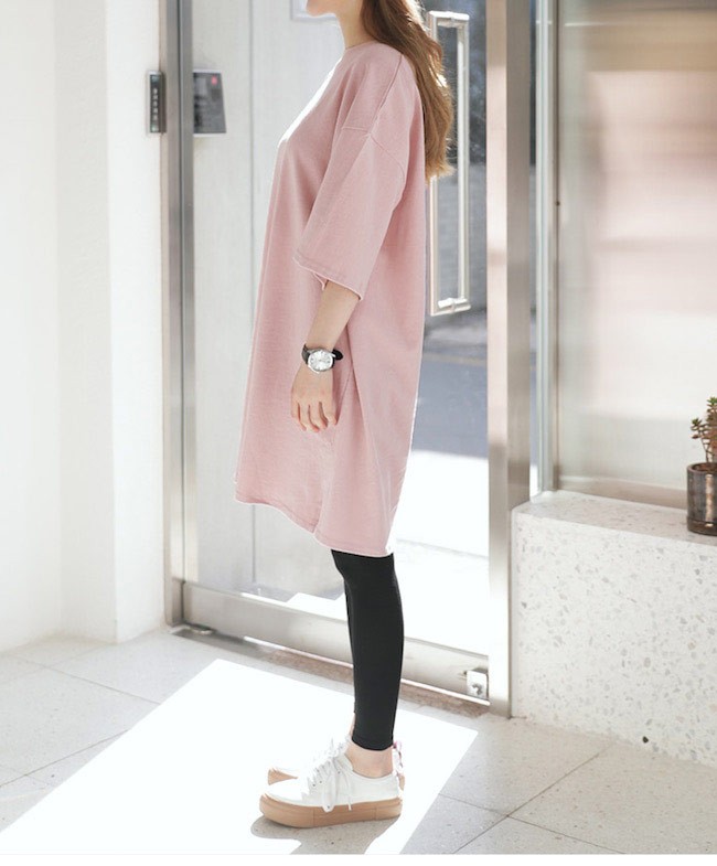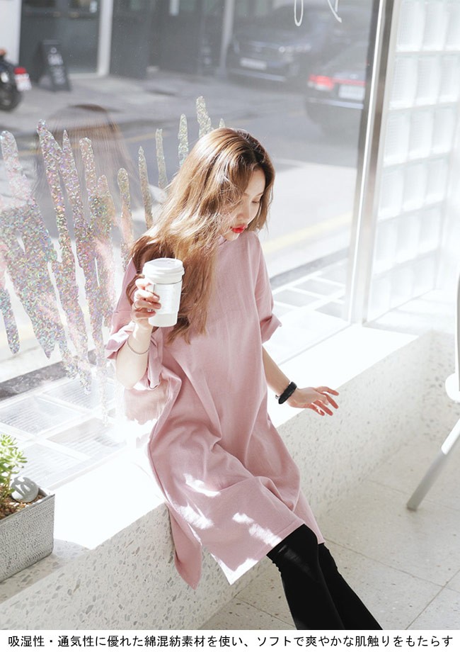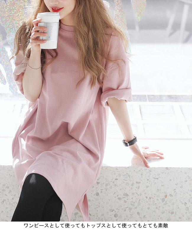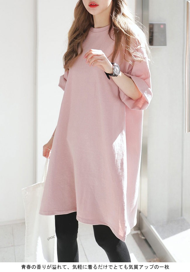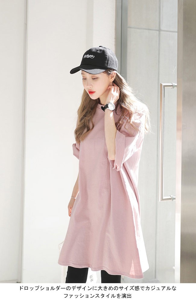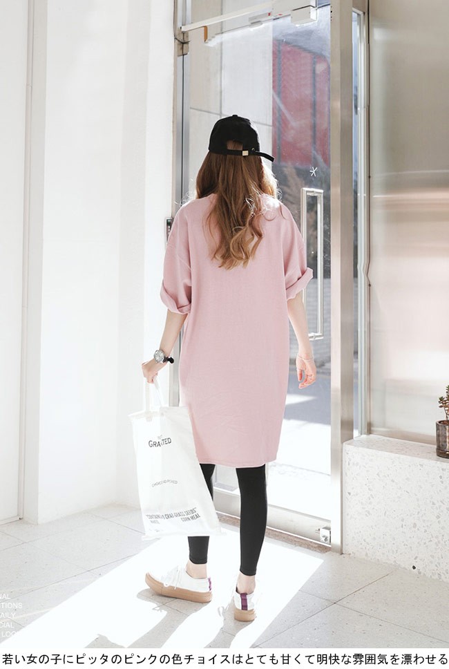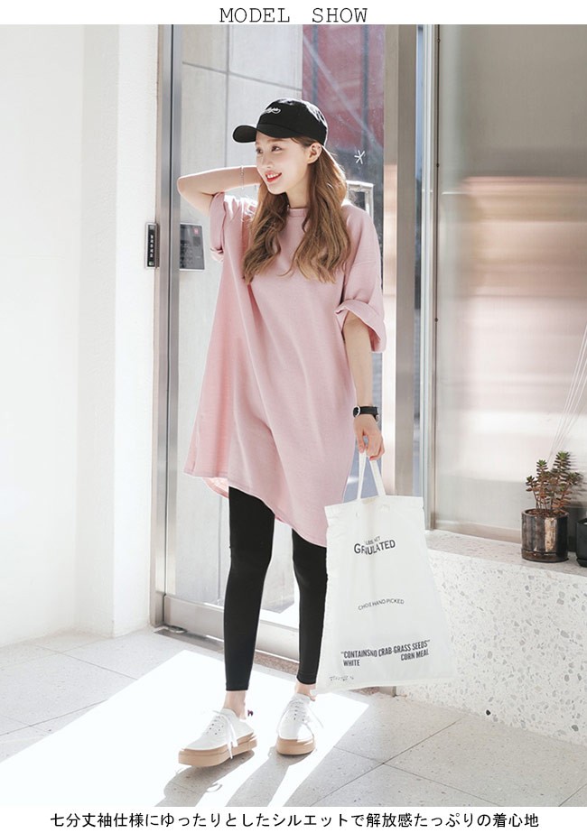 ロングTシャツ レディース 七分丈袖 ゆったり ドロップショルダー Tシャツワンピ 体型カバー 女性用 カジュアル 膝丈ワンピース 甘いレディース用のTシャツワンピが登場七分丈袖仕様にゆったりとしたシルエットで解放感たっぷりの着心地吸湿性・通気性に優れた綿混紡素材を使い、ソフトで爽やかな肌触りをもたらす若い女の子にピッタのピンクの色チョイスはとても甘くて明快な雰囲気を漂わせるドロップショルダーのデザインに大きめのサイズ感でカジュアルなファッションスタイルを演出青春の香りが溢れて、気軽に着るだけでとても気質アップの一枚ワンピースとして使ってもトップスとして使ってもとても素敵カラー:写真色素材 綿混紡サイズ(cm) M L XLM 総丈88 バスト112 肩幅55L 総丈89 バスト118 肩幅58XL 総丈90 バスト124 肩幅61ご注意:※サイズは平置きサイズです。素人採寸ですので、若干の誤差がございます、ご了承ください。
