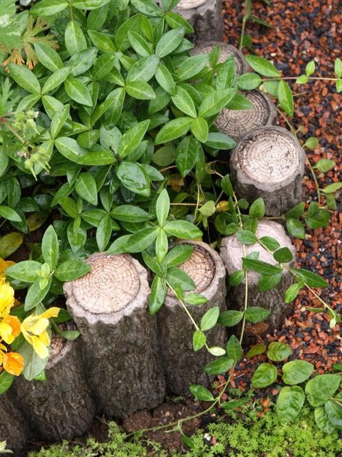 花壇や歩道の土留め、階段の装飾杭として。自然木を模した外観のため汚れや経年劣化が目立ちにくく、長期間の使用に耐えうる頑健な花壇材として公園、レジャー施設、遊歩道などでも使用されています。 |