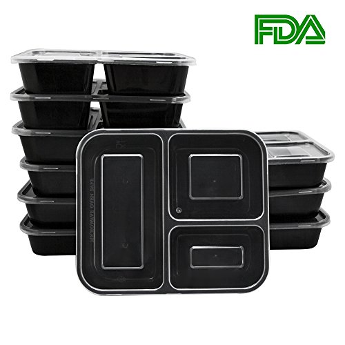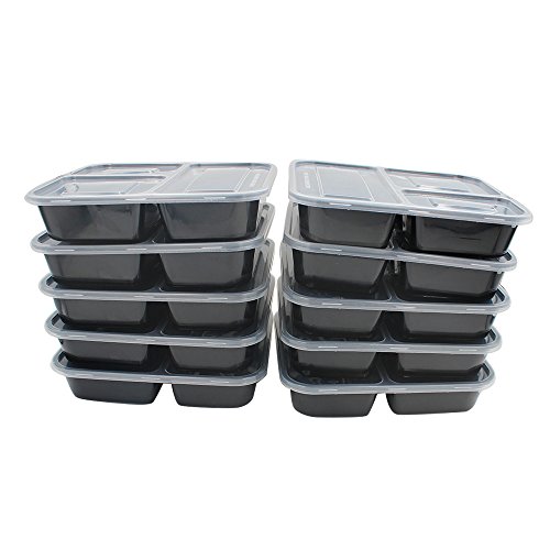LARGE: 10 Pack 3 compartments food container with lid