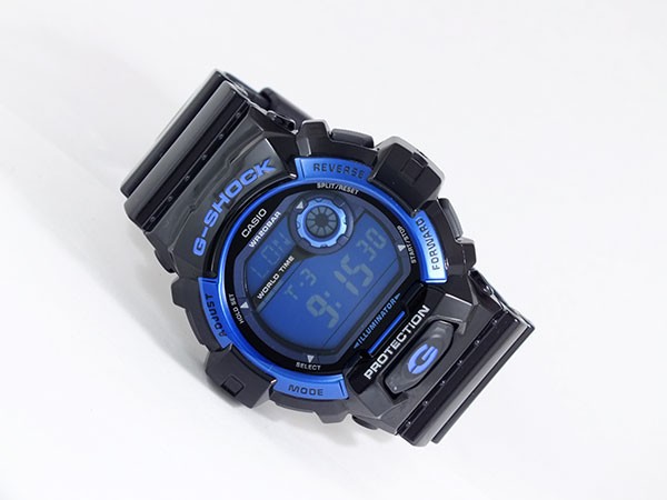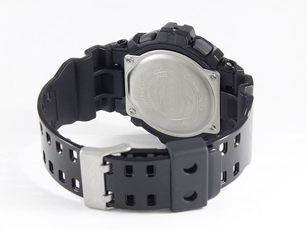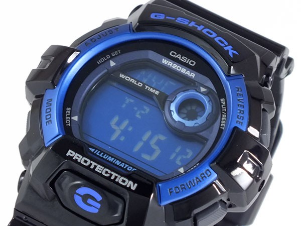 ★★ カシオ G-SHOCK ★★  商品仕様:(約)H55×W52×D16mm (ケース径、リューズを除く)、重さ(約)70g、腕回り最大(約)21cm、ベルト幅(約)最大29mm、(約)最小22mm 樹脂&ステンレス(ケース)、ラバー(ベルト) ボックス・保証書・取扱説明書メンズクオーツ、20気圧防水、ショックレジスト、マルチタイム、ワールドタイム、ストップウオッチ、タイマー、アラーム、時報、フルオートカレンダー、12/24 時間制表示切替、操作音ON/OFF切替、LEDバックライト、報音フラッシュ機能、平均月差±15秒、液晶&ブルー(文字盤カラー)、エナメルブラック(ベルトカラー)1年間