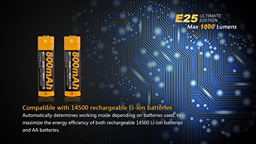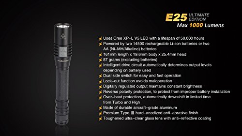 Fenix E25UE 2015 Ultimate Edition 1000 Lumen CREE XP-L V5 LED Flashlight with two EdisonBright AA batteries