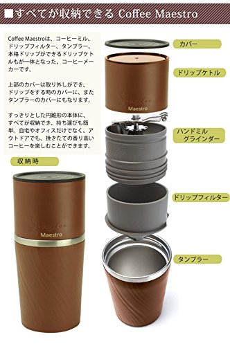 手動式ミル、ペーパーレスフィルター、ボトルがワンセットになったコーヒーメーカー