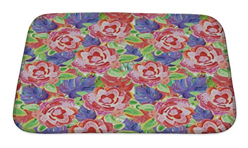 Gear New No Slip Microfiber Memory Foam Floral with Flowers Bath Rug Mat, 24" X 17"