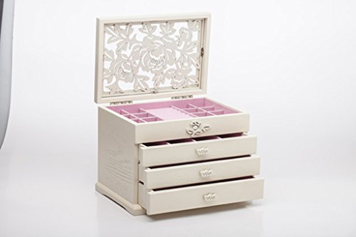 -. Title : Rose Carved Double Layer Jewelry Box Wine Red