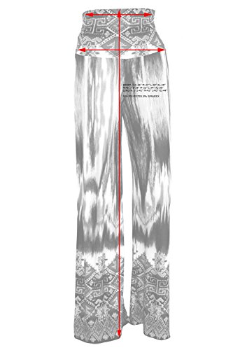 -. Feature : Rayon. Spandex. / High waisted. Banded. Stretch. / P.R.Inted. Solid. Flared. / Two tone colored. Tribal. Paisley. Geo. / Palazzo style flared pants featuring P.R.Ints and solids with various design constructions for your personal preference.