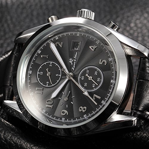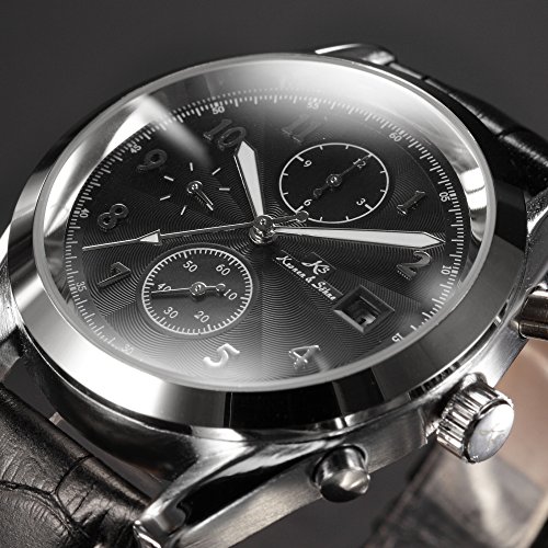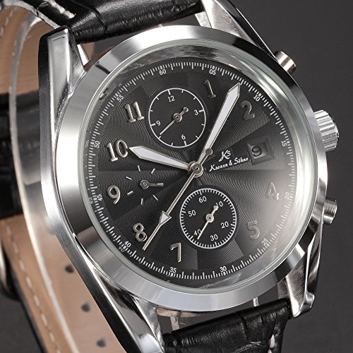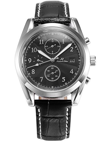 원본상품명: KS メンズ 自動機械式 日付月曜日表示 ブラック レザ? 腕時計KS177