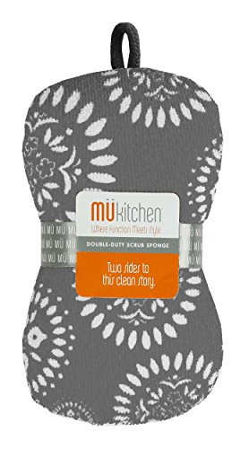 - MUkitchen's double-duty, delicate, and durable 2in1 sponge set in Medallion Gray/Red features printed scrub sponges that are Made from a revolutionary microfiber