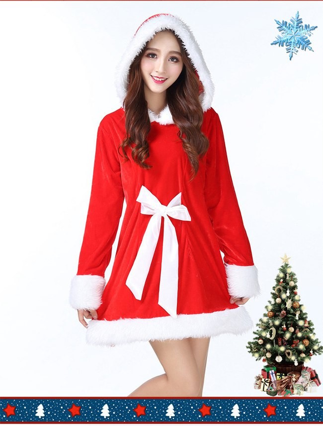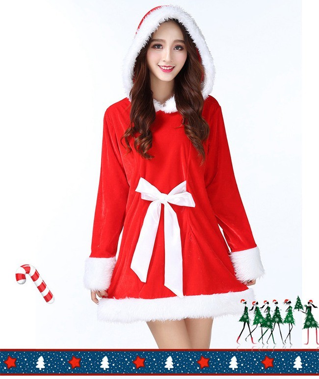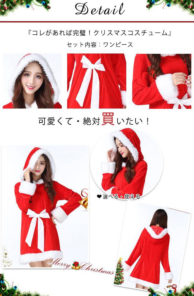 サンタ コスプレ レディース クリスマス 衣装 長袖 フェイクファー リボン フード付き ワンピース ミニ セクシー サンタクロース 仮装 変装 大人 服 サンタコス かわいい パーティーグッズ イベント用品 余興 xmas Christmas cos 女性用