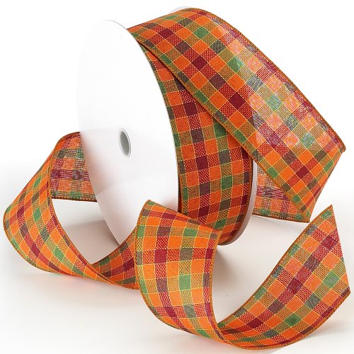 Morex Ribbon Autumn Plaid Wired Plaid Fabric Ribbon, 2-1/2-Inch by 50-Yard Spool, Orange