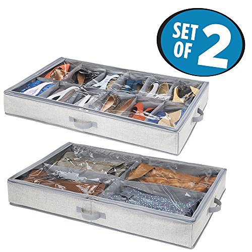 mDesign Under Bed Organizer Boxes for Bedroom Storage to Hold Shoes, Boots - Set of 2, Gray