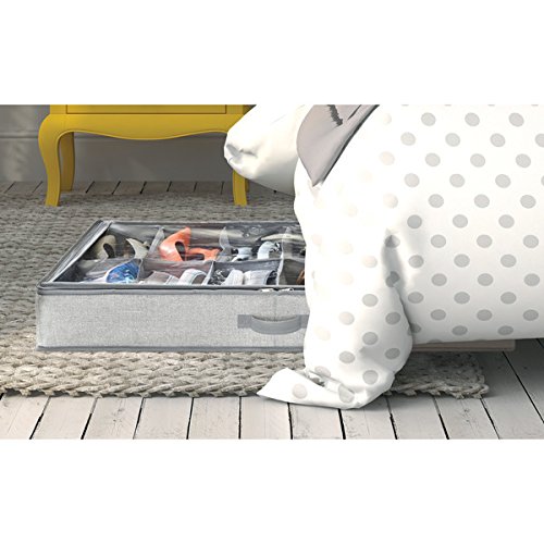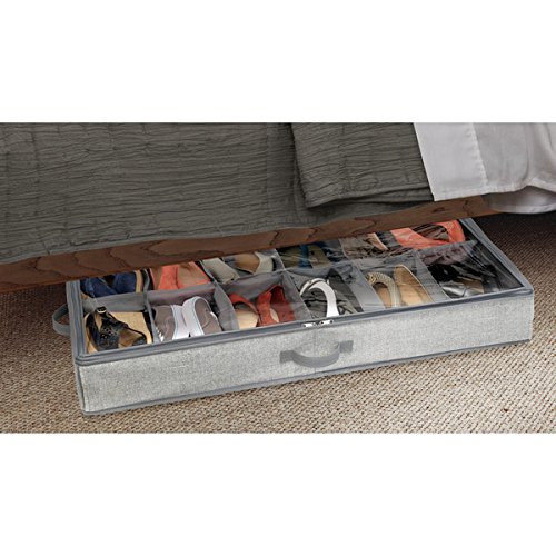 - Under bed shoe organizer is a convenient way to store up to 12 pairs of your favorite athletic shoes, sandals, wedges and more while discreetly storing them under the bed; Side handles make for an easy pull to access your shoes