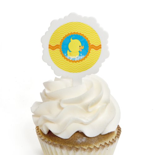 Ducky Duck - Cupcake Picks with Stickers - Baby Shower or Birthday Party Cupcake Toppers - 12 Count