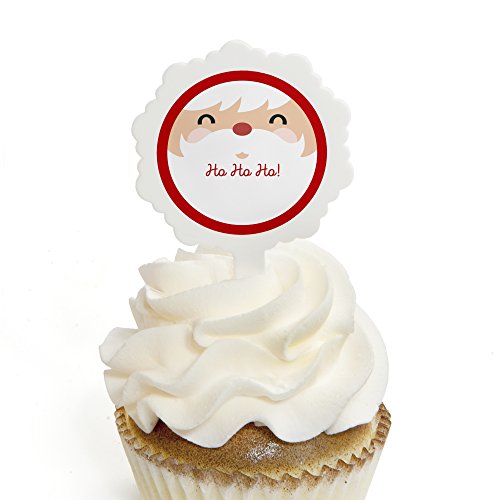 Jolly Santa Claus - Cupcake Picks with Stickers - Christmas Party Cupcake Toppers - 12 Count