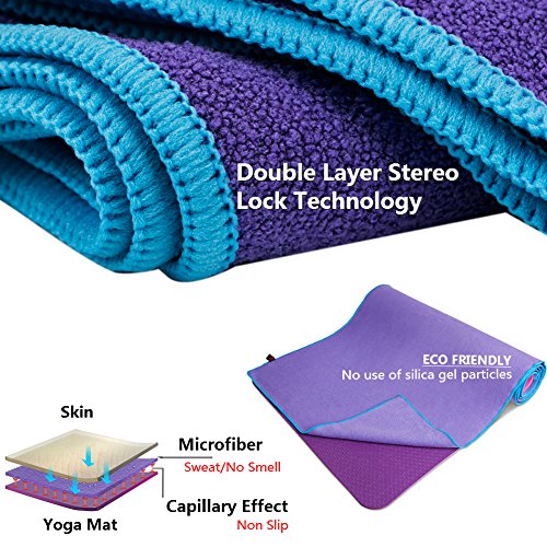 NON SLIP NON SKID - Made of 100% microfiber material,ultra-soft and highly absorbent,Stay firmly in place,yoga mat towels has skidless and grippy for bikram pilates and so on.
