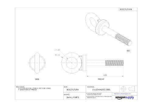 316 Stainless Steel Eyebolt, Not For Lifting, 4" Length, Threads, Imported