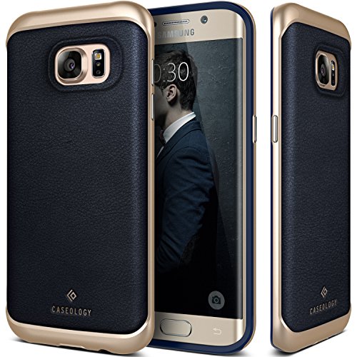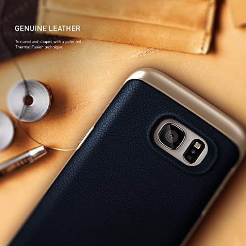 Galaxy S7 Edge Case, Caseology® [Envoy Series] [GENUINE LEATHER] [Leather Navy Blue] Leather Bound Bumper Cover for Samsung Galaxy S7 Edge (2016) - Leather Navy Blue