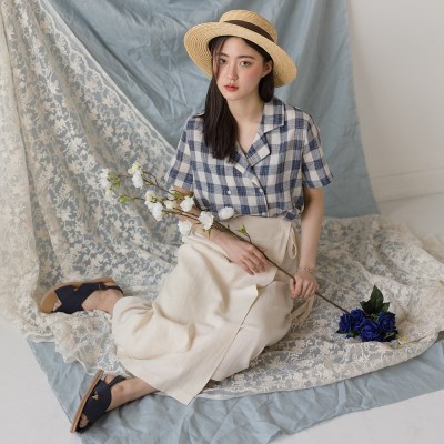 • style 더블버튼 / 반팔셔츠 / 체크패턴