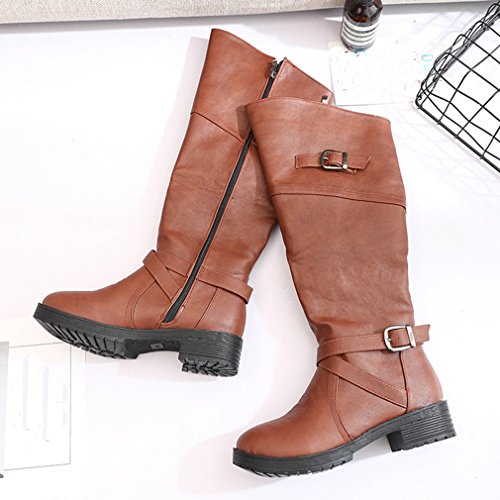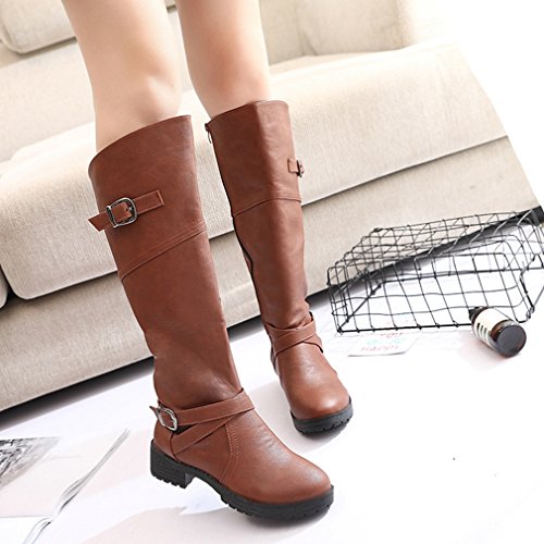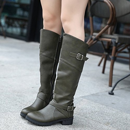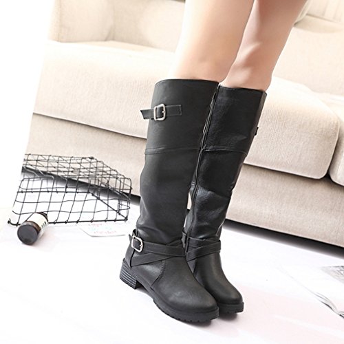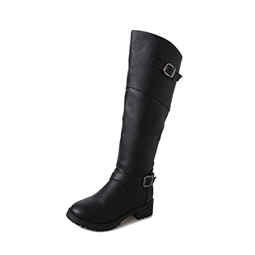 (Btrada)/Women's/Boots/DIRECT FROM USA/Btrada Womens Over The Knee Thigh High Wide Calf Boots Belt Buckle Block Heel Zipper Velvet Rid...