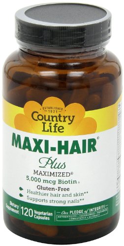 -. Title : Country Life Maxi Hair Plus 5,000 mcg Biotin 120 VegiCaps