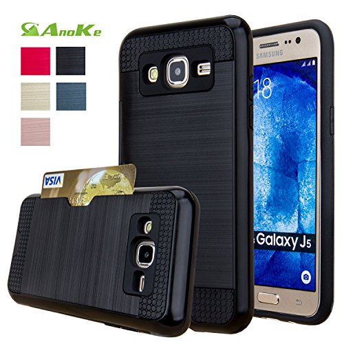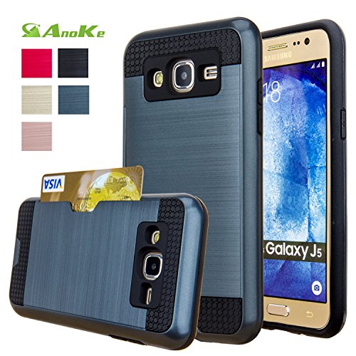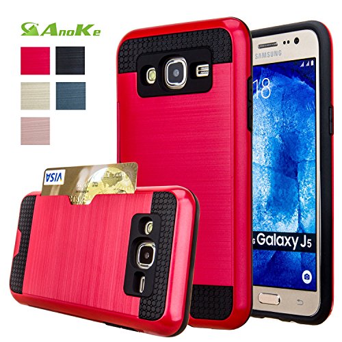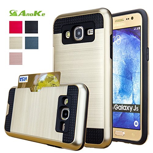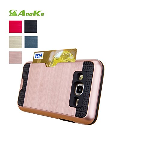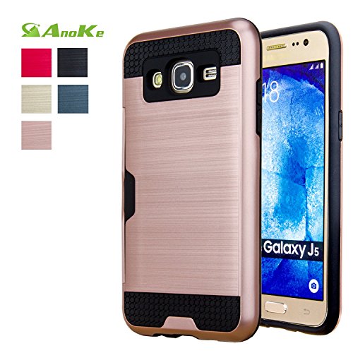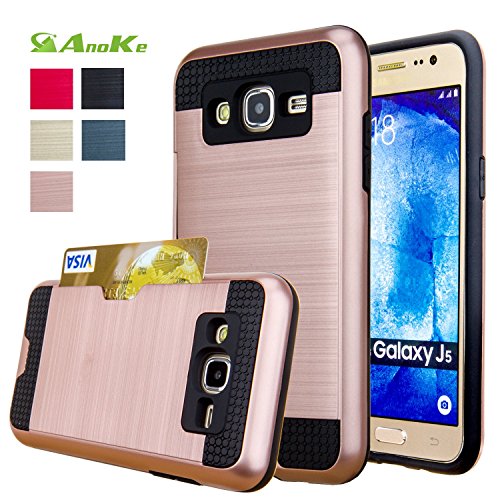 Galaxy J5 Case,(J500 / Not Fit J510 2016) AnoKe [Credit Card Slots Holder][Not Wallet] Hard Silicone Rubber Hybrid Armor Shockproof Protective Case For Samsung Galaxy J5 J500 - KLS Rose Gold