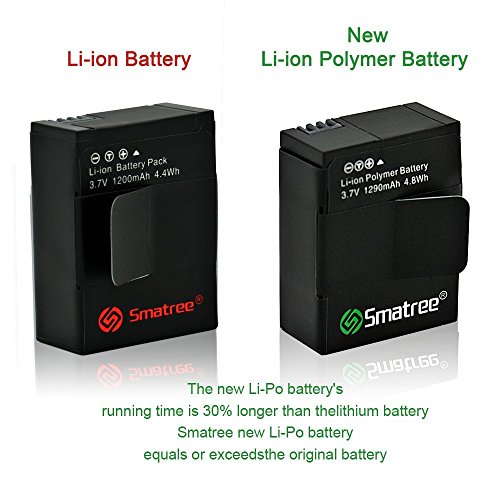 Applied with high-tech Japanese cells, Smatree High Capacity Li-Polymer Batteries comes with 1290 mAh for safer and longer battery life.The running time of Smatree batteries equal or exceed OEM batteries. They are fully compatible with the GoPro HERO3+ and HERO3.