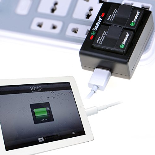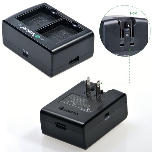 Smatree Dual Channel Charger has a built-in US plug and a USB port. It can not only charge two batteries, but also supports iPad, iPhone or other portable devices charging. It is definitely a time-saving, space-saving and portable charger adapter.