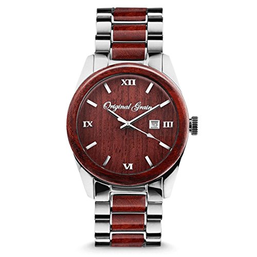 -. Feature : ORIGINAL GRAIN is the premier maker of natural wood and steel watches. We are purveyors of style forged of wood, steel and a fresh approach to classic traditions. We hold our timepieces to the highest standards of craftsmanship, authenticity and quality. In doing so, each of our products is truly an original. The Classic Collection features the silhouette that started it all, setting the bar for a timeless element of style with a mix of exotic hardwood and steel. / HAND CRAFTED - Each one of our hardwood timepieces is hand tooled to fit each time piece using traditional woodworking techniques, ensuring each watch is unique and no two pieces are the same. Stainless steel watch band can be adjusted for almost any size wrist by adding or removing links. Watch face displays the date of the month. Japanese quartz movement with analog display ensures lasting precision. Silver oxide battery included; ships in premium wood engraved box. 1 YEAR WARRANTY / SUSTAINABLY SOURCED - All of our wood comes from reliable sources and is certified by the Forest Stewardship Council. This wrist watch features natural rosewood from Eastern and Central Africa. Our premium wood watches can be worn daily and won't degrade or become brittle over time. / WATER RESISTANT to 5ATM. However, the natual wood should not be submerged for long periods of time. The stainless steel construction helps prevent water from seeping into the delicate inner workings of the watch. / SCRATCH RESISTANT - High quality mineral crystal glass protects the natural wood dial and won't scratch or scrape easily.