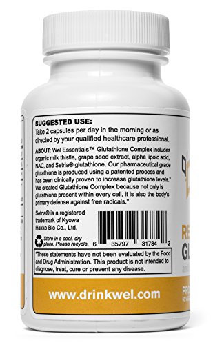 Wel Essentials Glutathione Complex is an antioxidant & herbal complex designed to promote healthy detoxification.* Our formula is specifically designed to maximize glutathione levels, going beyond your standard glutathione support products.*