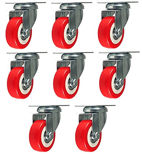 Pack of 8 Caster Wheels Swivel Plate on Red Polyurethane Wheels 2" no brake