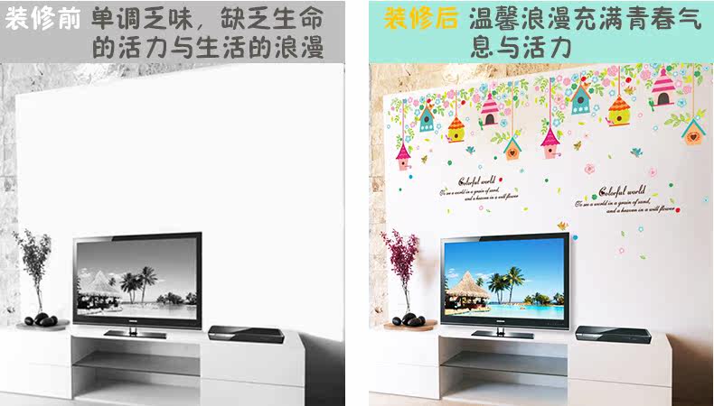 美式田园风家居装饰品鸟笼墙贴客厅卧室床头温馨创意墙上贴纸贴画