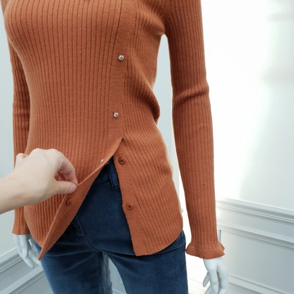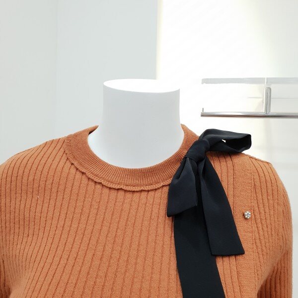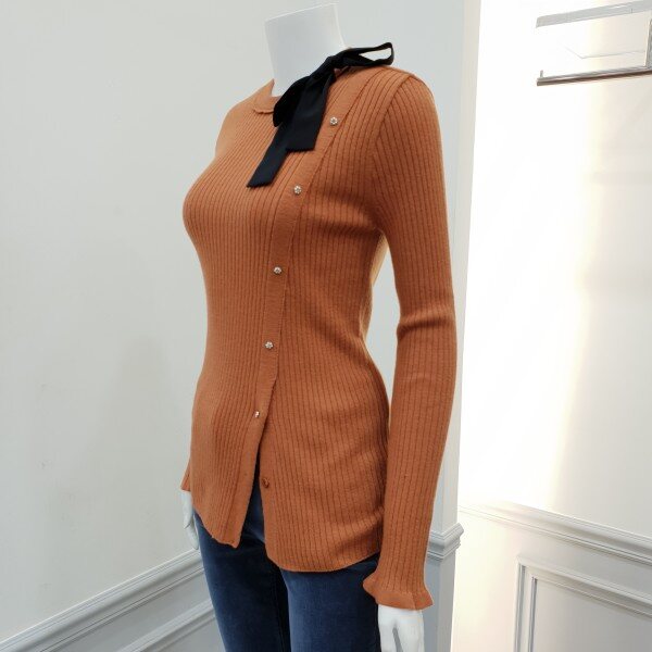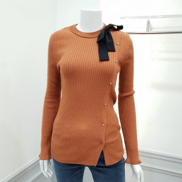 비대칭여밈의 슬림핏의 풀오버로신축성좋구용~♡ 장식단추와리본브로치장식으로 감성표혓