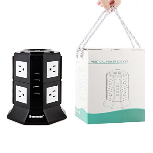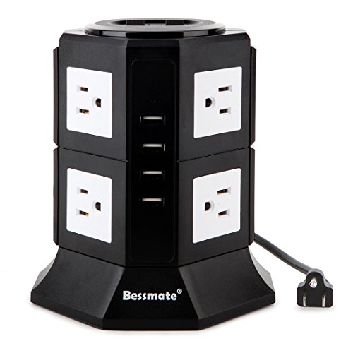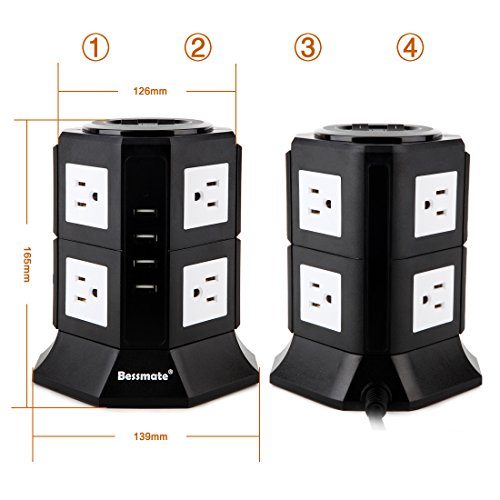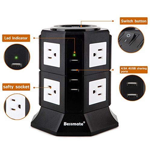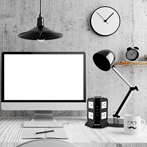 - Use Vertical Space: 8 outlets and 4 usb distribute vertically in four sides of power strip, providing enough space between each outlets