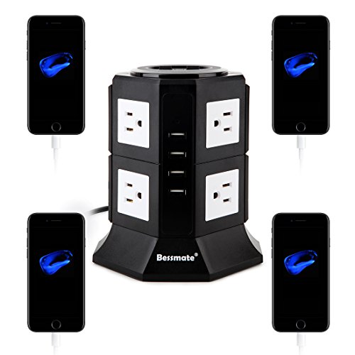 Bessmate Power Strip 8-Outlet Surge Protector with 6.5-Foot Power Cord and 4 USB Charging Ports(5V/4.5A), 1000 Joules (Black+White)