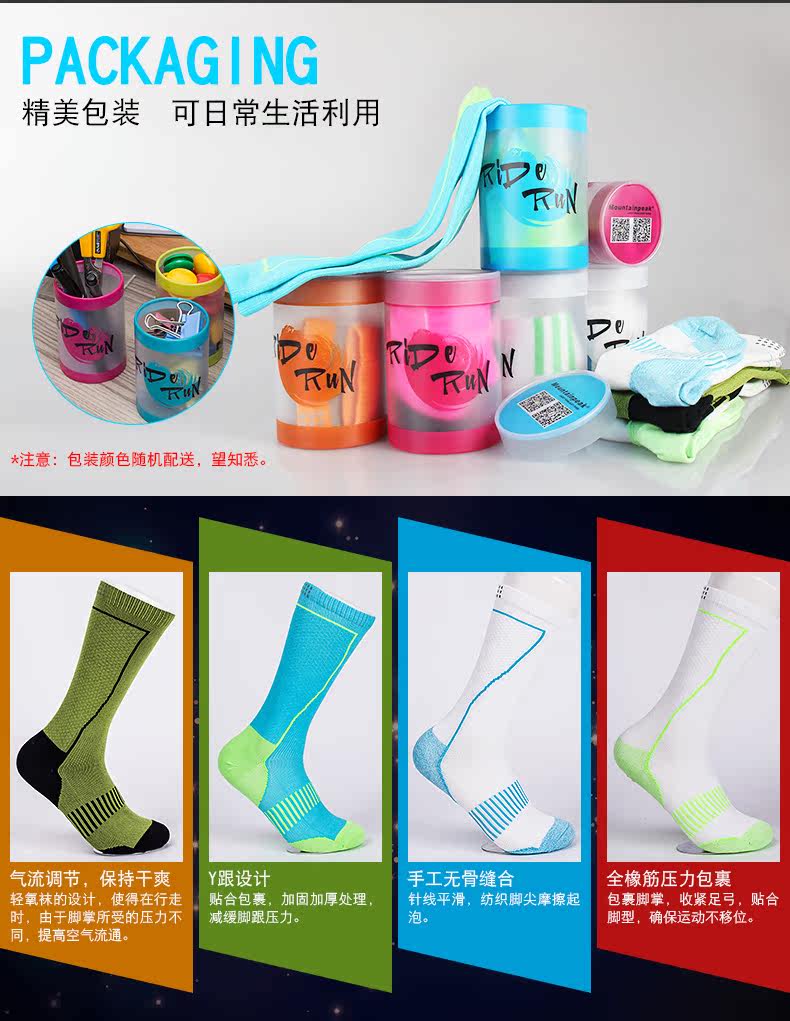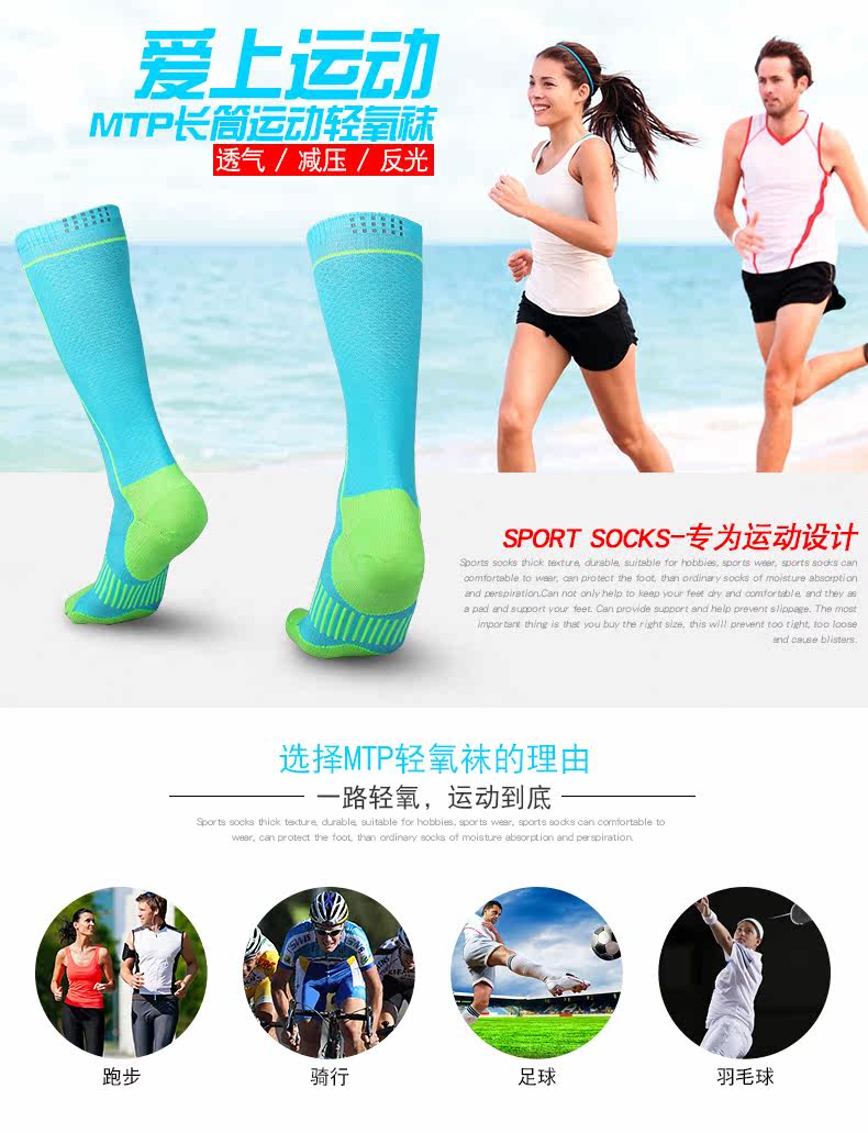 长筒跑步骑行袜子男女 长跑马拉松足球户外运动透气防臭高筒袜