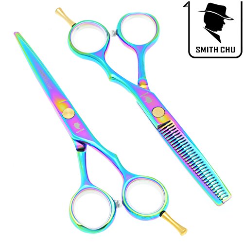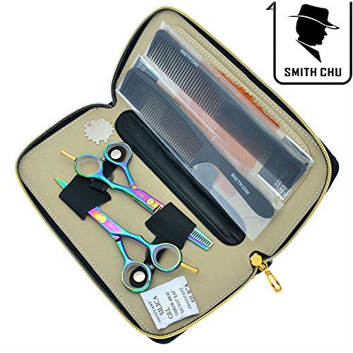 Smith Chu 5.5 Inch Professional Rainbow Salon Hair Shears Kit Cutting & Thinning Scissors Hairdressing Barber Set with Comb/Case