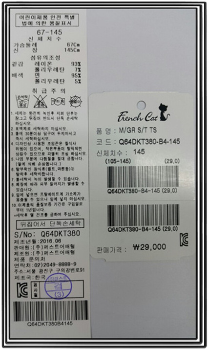 세탁후 큐빅빠짐 현상이 있을수 있으며 A/S는 전국 (프렌치캣)매장에서