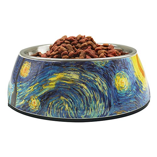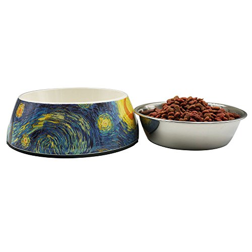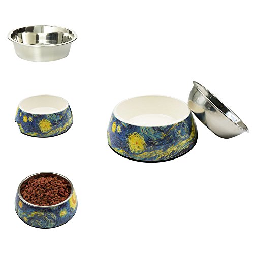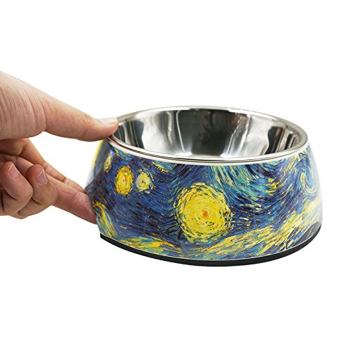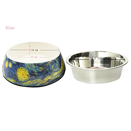 Singyep Moon and Sun Pattern Style Stainless Steel Pet Bowl Non Skip Water Food Feeder Dish for...