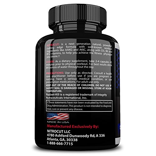 -. Feature : Increase Muscle Mass, Boost Strength and Get Results Starting Today! Nitrocut® Will Take Your Workouts to the Next Level! 100% Satisfaction Guaranteed Or Your Money Back! / #1 Top Rated Formula Engineered to Deliver Maximum Results. Advanced 4X Nitric Oxide Booster Outperforms the Competition! Plus a Powerful Blend of Natural Strength Boosters and Razberi-K® / Top Quality You Can Trust! Nitrocut Pre Workout is GMP Certified and is Manufactured in the USA to the Highest Standards. Nitrocut® is a Registered Trademark Brand Since 2012! / A Complete 30-Day Supply of Nitrocut's Top NO2 Supplement Formulation is Included In Your Bottle! / Full 60 Day 100% Money Back Guarantee. Buy With Complete Confidence! Nitrocut® Will Be the Best Nitric Oxide Supplement You Ever Take, That If You Don't Love it, Simply Return to Amazon and Be Refunded Every Penny!