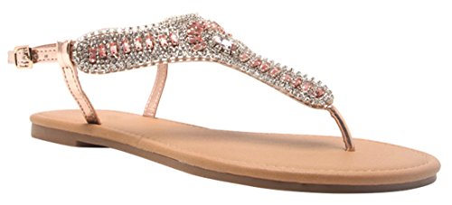 Cambridge Select Women's T-Strap Crystal Rhinestone Beaded Flat Thong Sandal