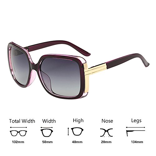 BVAGSS Polarized Sunglasses Women Vintage Oversized Sun Glass WS047 (Purple Frame, Grey Lens)