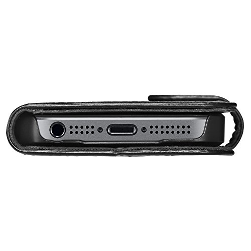 - Feature : Premium Synthetic Leather Wallet Case / Wallet: Slots for essential ID and Cards / Stand Feature: Adjustable Viewing Angles / Dual sided magnetic strap for convenient tuck away / iPhone SE Case Compatible with iPhone 5 / 5s / iPhone SE (2016)