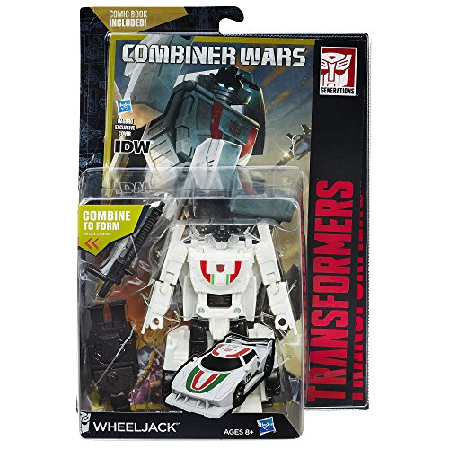 -. Binding : Toy -. Brand : Transformers -. EAN : 0630509386789 -. Feature : Changes from robot to sports car and back / Becomes an arm or a leg for Combiner figures / Collect all 6 figures and combine to form a Sky Reign Combiner figure / Works with any Voyager Scale Combiner Wars figure (sold separately) / Includes Deluxe Scale Wheeljack figure, sword accessory, comic book, and instructions. -. IsAdultProduct : 0 -. Label : Hasbro -. Manufacturer : Hasbro -. Model : B5605 -. MPN : B5605000 -. PackageQuantity : 1 -. PartNumber : B5605000 -. ProductGroup : Toy -. ProductTypeName : TOYS_AND_GAMES -. Publisher : Hasbro -. Studio : Hasbro -. Title : Transformers Generations Combiner Wars Deluxe Class Wheeljack -. UPC : 630509386789 -. Warranty : No Warranty