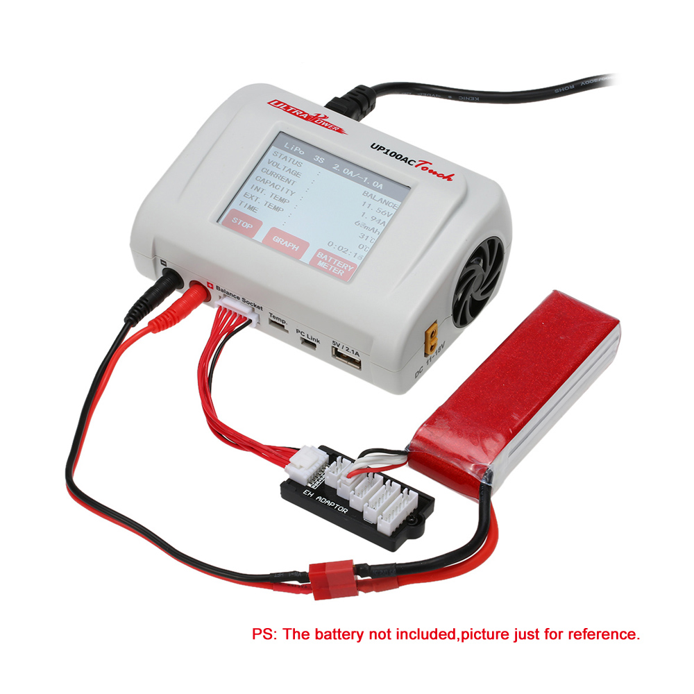 The charger is quite compact. So it can be stored in your pit bag or box easily! The charger also features Li-Po balance charge, Li-Po fast charge, Li-Po storage, and Li-Po discharge modes. Besides, the charger can be used to power other DC devices such as chargers, lathes, lights, etc. It puts out a whopping 100W of power. And its screen will provide a read out of each cell's voltage, the total pack voltage, as well as the highest and lowest cells. You couldn't miss it.