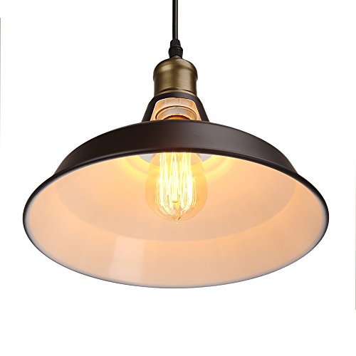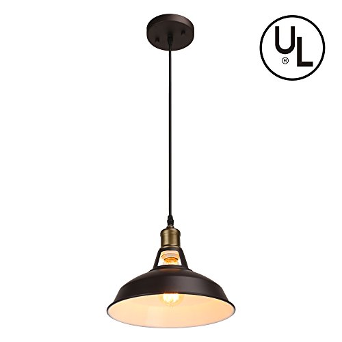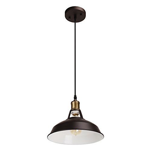 Barn Pendant Light Hanging Light Fixture, Housen Solutions 1-Light Industrial Iron Pendant Lamp Shade, UL Listed, Painted Brown Ceiling Light for Kitchen Bars Dining Room