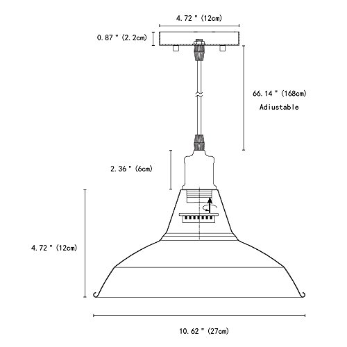 - ADJUSTABLE CORD HEIGHT: Maximum 66.14”(168cm) black cord can be cut or be coiled in the canopy to adjust for different ceiling height, Hard-Wired. Shade Dimension: 10.62"D * 5.23"H (27*13.3CM)