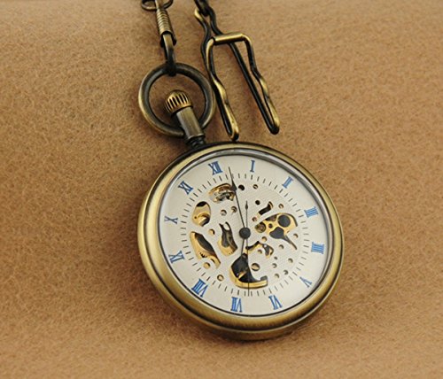 -. Title : VIGOROSO Men's Vintage Bronze Skeleton Open Face Hand Winding Steampunk Mechanical Pocket Watch